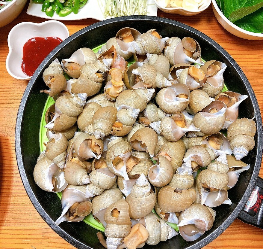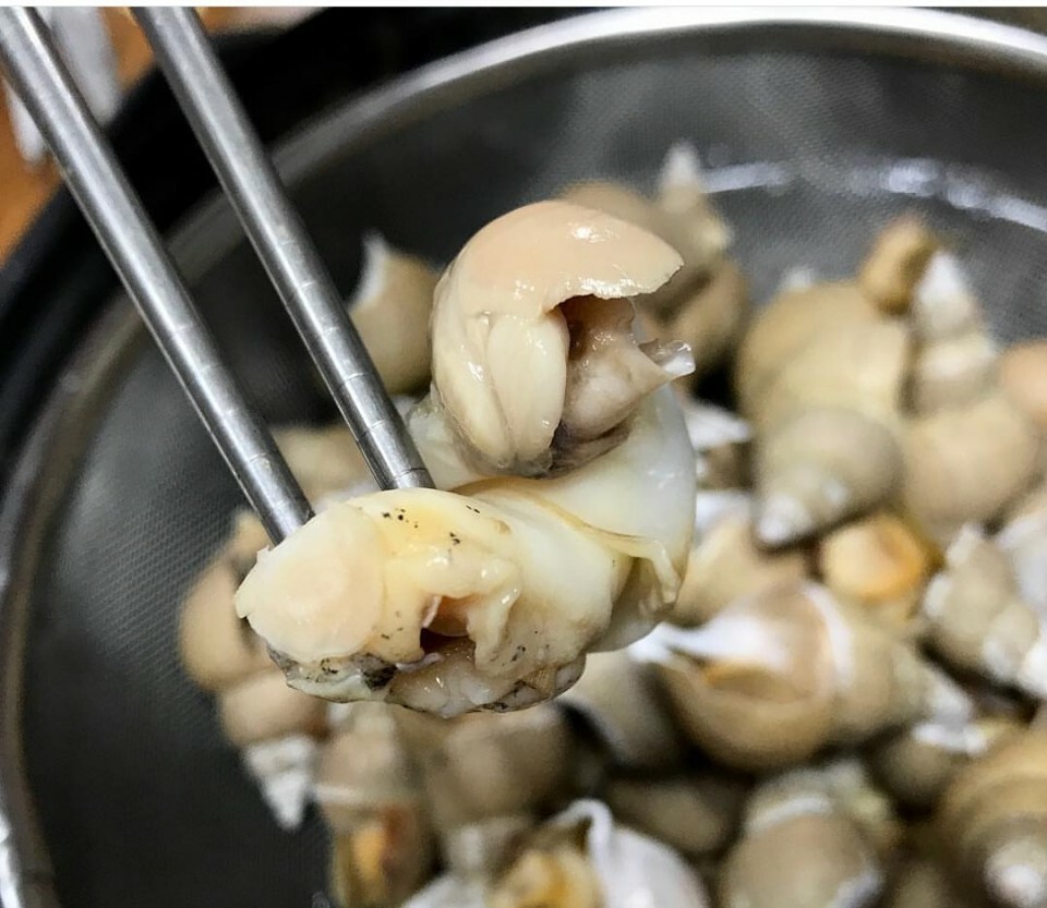 *끓는물에 소주넣고 백고동넣고 15분정도 삶은후